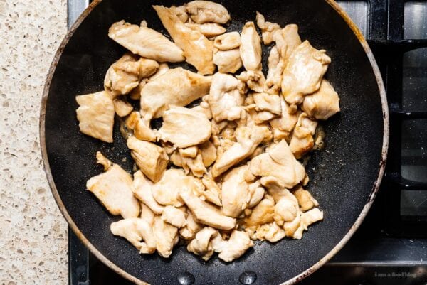 Prepare your fluffy white rice or crispy chow mein if needed. Then, heat up 1 tbsp of oil in the same nonstick skillet over medium-high heat. When hot, add your protein and quickly stir fry until cooked through, about 3-4 minutes, then remove.