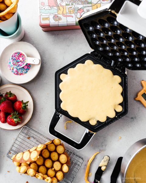 Note: How much batter you use will depend on your waffle maker. The waffle maker I use takes a under 1 cup (about 7/8) to fill completely. It’s a delicate balance because too much and the batter will definitely ooze out the sides so if you’re neat freak, err on the side of just touch over 3/4 cups.