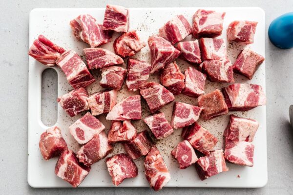 - 3 lb pork shoulder/butt cubed, well marbled