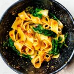 Once the satế is ready, bring a large pot of generously salted water to a boil over high heat. Add the pasta and cook 3 minutes shy of al dente. Drain well, reserving 1½ cups pasta water.